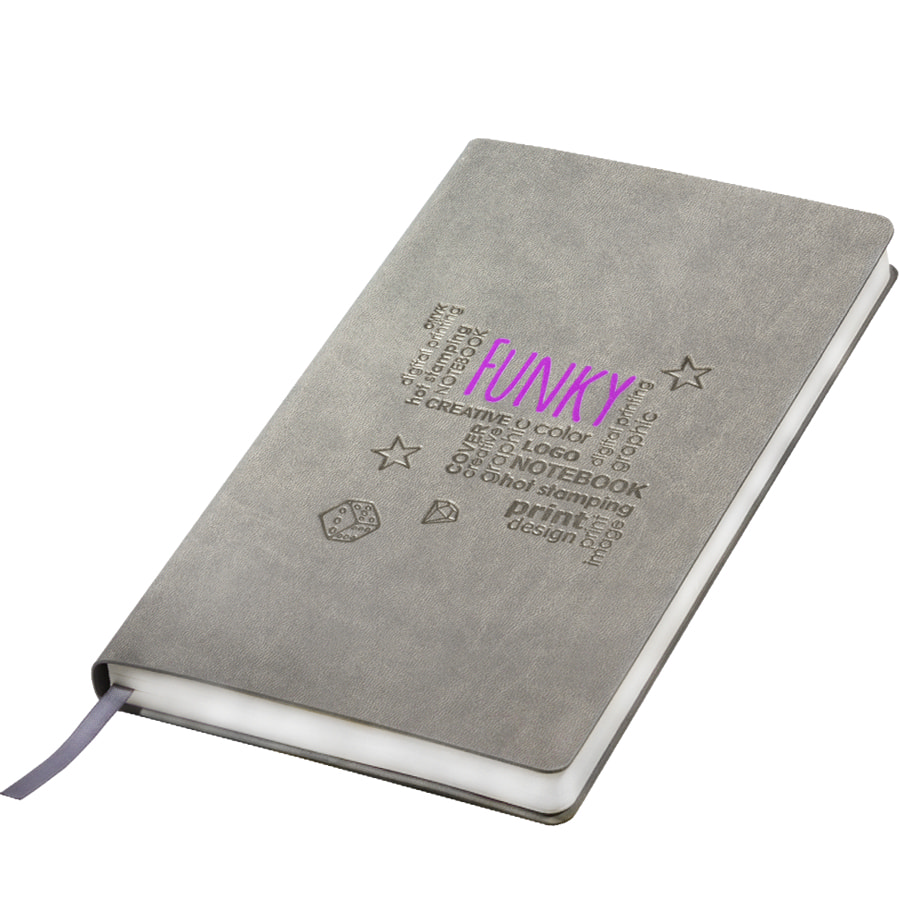 Бизнес-блокнот FUNKY, 130*210 мм, серый/фиолетовый форзац, мягкая обложка, блок-линейка