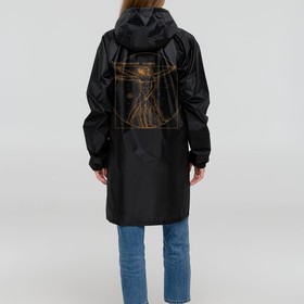 Ветреная погода может внести свои коррективы даже в идеальную симметрию! Сильный порыв — и человек с картины Леонардо да Винчи стал ВЕТРОвианским. Главное — успеть удержать фиговый листочек на нужном месте.Плащ-дождевик из ткани таффета на молнии с капюшоном. Складывается в мешочек — удобно брать с собой.