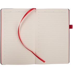 Ежедневник с твердой обложкой, выполнен из материала Waltz, черный АА, дополнен красными резинкой и ляссе.