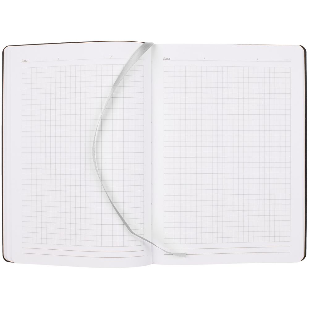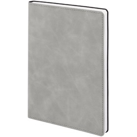 Ежедневник в клетку, с гибкой обложкой, выполнен из материала Nubuck Touch, серый СС, дополнен ляссе темно-серого цвета.