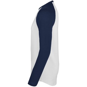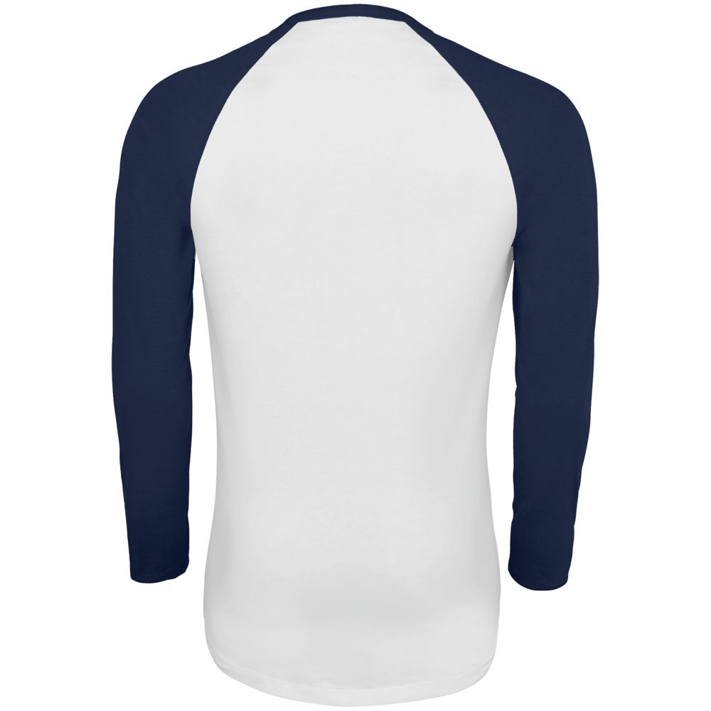 Мужская двухцветная футболка с боковыми швами, длинным рукавом реглан и закругленным низом.