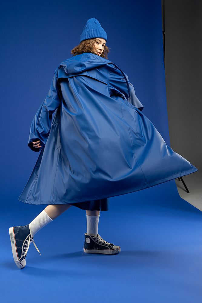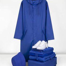 Плащ-дождевик с капюшоном из полиэстера с полиуретановым непромокаемым покрытием.