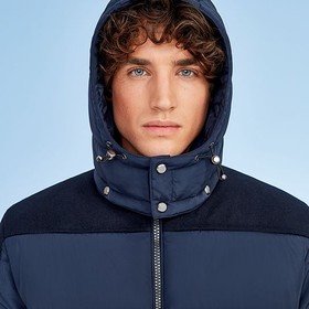 Мужская утепленная куртка на молнии с отстегивающимся капюшоном.