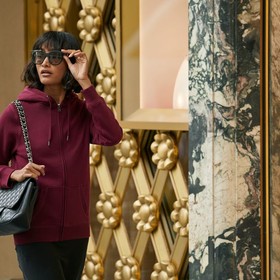 Женская толстовка на молнии с капюшоном.