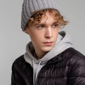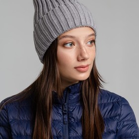 Однослойная шапка фактурной вязки с флисовой подкладкой.