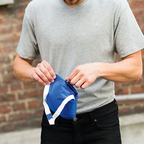 - Карман куртки служит сумочкой для нее: при необходимости ветровку можно компактно сложить, застегнуть карман на молнию и использовать пришитую эластичную тесьму, чтобы носить сложенную ветровку с собой на поясе.