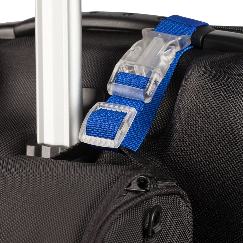 Универсальное крепление с регулируемой длиной для фиксации ручной клади на дорожных сумках и чемоданах.