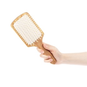 Массажная расческа Vihri из карельской березы с закругленными деревянными зубцами обеспечивает бережное расчесывание волос любой длины. Натуральный материал не дает жирным волосам засаливаться, а сухим — сечься и ломаться, нейтрализует статическое электричество, приглаживает чешуйки и усиливает естественный блеск.