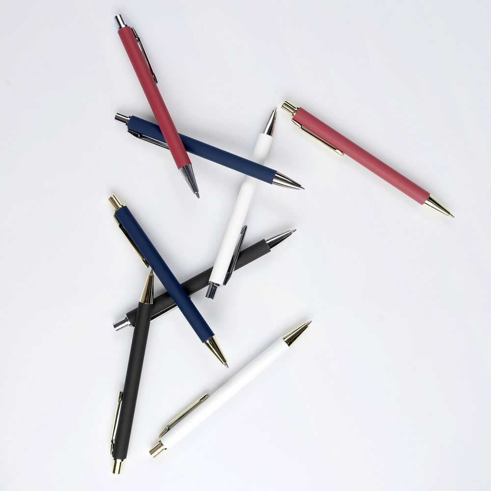 Шариковая ручка с покрытием софт-тач и хромированными деталями. Клип оригинальной формы.