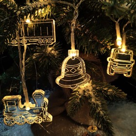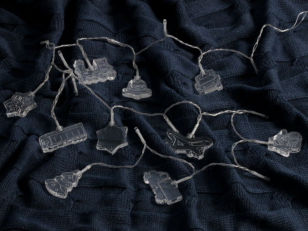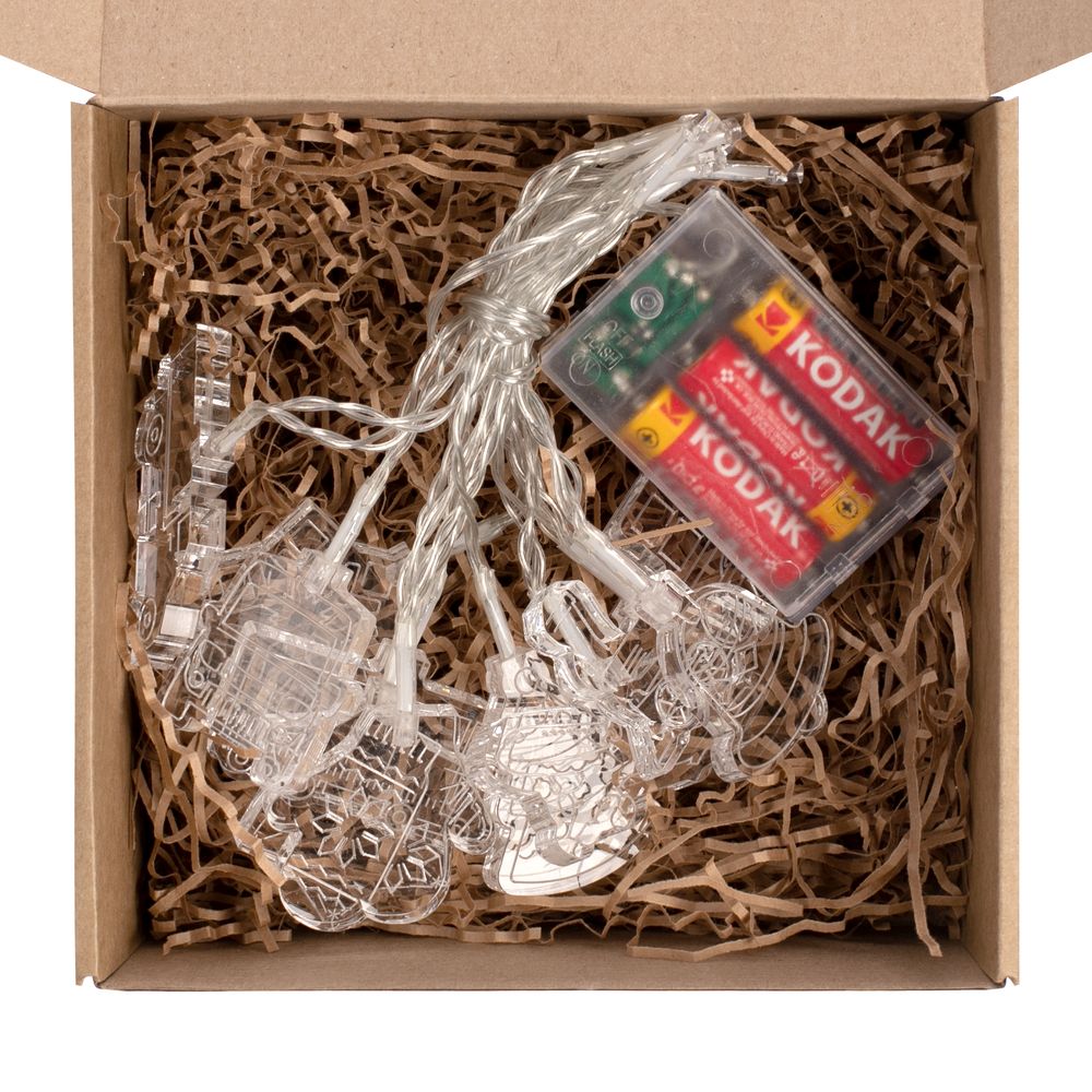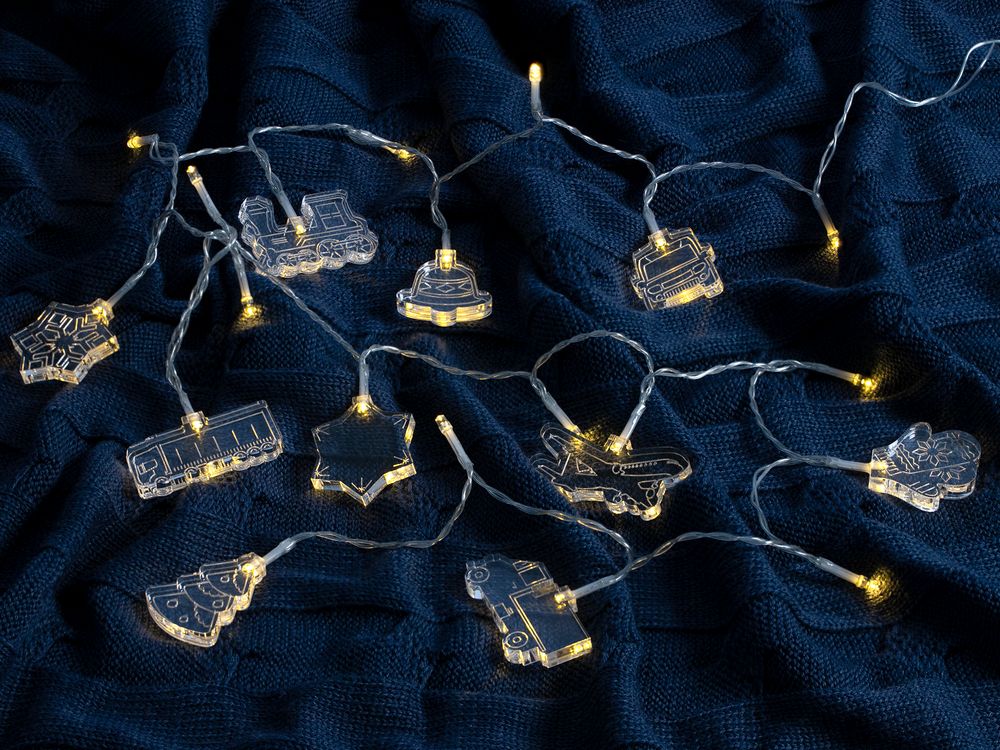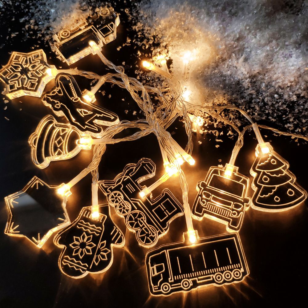 Гирлянда состоит из 20 светодиодов c теплым светом и 10 акриловых фигурок.