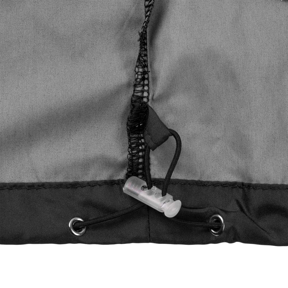 Капюшон убирается в воротник. Манжеты на резинке, утягивающий шнур по низу.