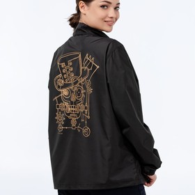 Пришло время впустить пар! Берем пример с Джонни-черепа: бронзовые и латунные оттенки, очки-гогглы, пара дюжин шестеренок и механизмов всех мастей, цепи, колбы и черный цилиндр. Все, теперь ваш образ в стиле стимпанк готов. Можно отправляться в будущее или прошлое – куда пожелаете?Ветровка на молнии с капюшоном и одним карманом с правой стороны.