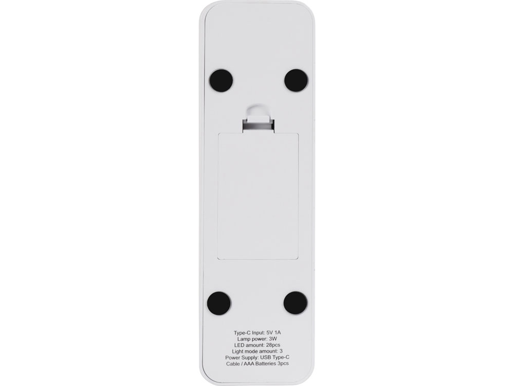 Ультра-портативная лампа на основе LED-элементов освещения с питанием от двух видов источников - USB или батареек. Спрятанные в стойки ножки дополнительно позволяют использовать лампу в качестве подставки для телефона. Лампа оснащена сенсорным включателем - с помощью легкого нажатия можно выбирать один из трех уровней яркости. Легко складывается, принимая компактный размер. Большая зона для декорирования. Питание либо от USB источника, либо от 3-х батареек ААА. Кабель USB Type-C в комплекте.