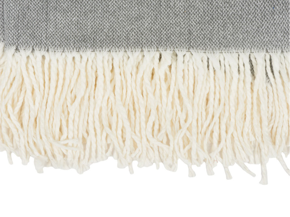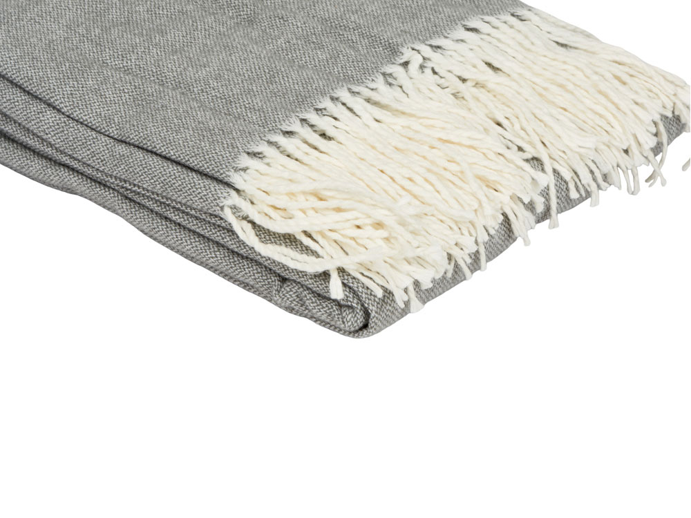 Большой размер этого мягкого плотного пледа позволяет использовать его как одеяло и как покрывало, украшающее интерьер. По бокам плед украшен бахромой. В комплекте идет упаковочная серая лента, на которой можно сделать нанесение.