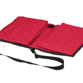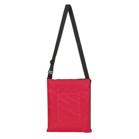 Двухсторонний плед с водоотталкивающим покрытием с одной стороны и мягким флисом с другой. Складывается в сумку на плечо и фиксируется с помощью молнии. В собранном виде имеет регулируемый по длине ремень для переноски и наружный карман для мелочей.