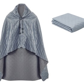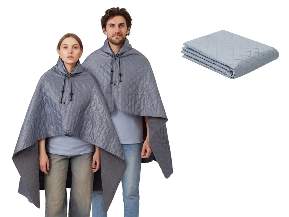 На внутренней стороне из флиса приятно и тепло сидеть, а наружная сторона из полиэстера с водоотталкивающим покрытием не позволяет пледу намокнуть или сильно испачкаться. Для больше удобства использования пледа во время дождя в комплекте идет капюшон, который фиксируется с помощью " липучки". Накинув плед на плечи, застегните его на кнопки вверху и наденьте капюшон. Вы не промокните во время неожиданного дождя!