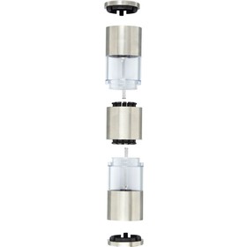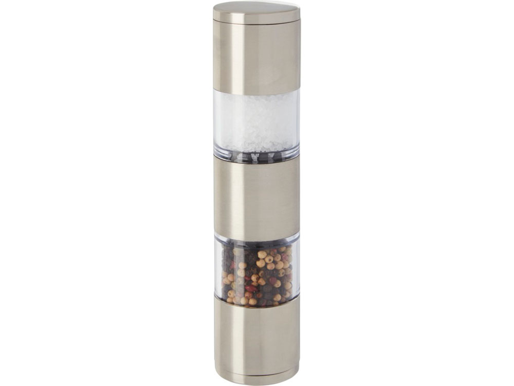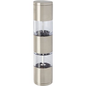 Двусторонняя мельница с одной стороной для соли, а второй для перца. Перец и соль в комплект не входят. Нержавеющая сталь, пластик PS.