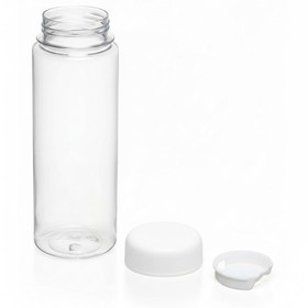 Лаконичный внешний вид позволяет нанести на аксессуар логотип компании. Прозрачный корпус дает возможность контролировать количество содержимого. Благодаря съемному фильтру в воду можно добавлять лимон, мяту и фрукты. Силиконовое кольцо предотвращает протекание, а крышка надежно закрывает бутылку.