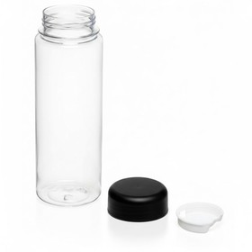 Лаконичный внешний вид позволяет нанести на аксессуар логотип компании. Прозрачный корпус дает возможность контролировать количество содержимого. Благодаря съемному фильтру в воду можно добавлять лимон, мяту и фрукты. Силиконовое кольцо предотвращает протекание, а крышка надежно закрывает бутылку.