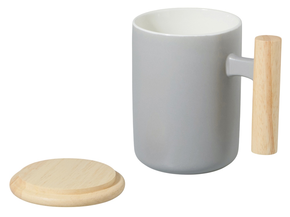 Кружка с ручкой и крышкой из каучукового дерева Jeny, серый