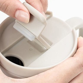 Термокружка комплектуется двумя видами крышек. Они выполняют теплосберегающую и гигиеническую функции. Крышки плотно прилегают к корпусу термокружки за счет силиконовых уплотнителей, которые предотвращают случайное протекание напитка. При питье можно не снимать крышку, используя вариант с откидным клапаном. Он защищает питьевое отверстие от попадания пыли, минимизирует влияние температуры окружающей среды, легко открывается и закрывается одной рукой. В положении "открыто" клапан плотно фиксируется в плоскости крышки и не опрокидывается при питье. Крышка с клапаном имеет два специальных выступа с диаметрально противоположных сторон для облегчения её снятия.
