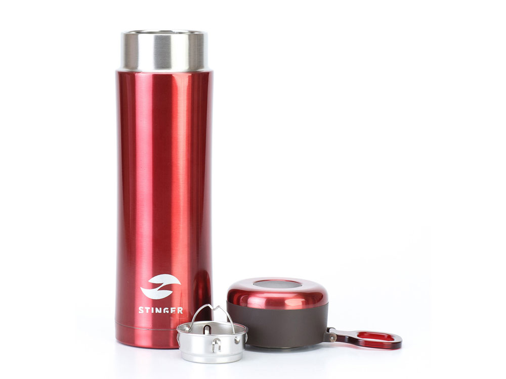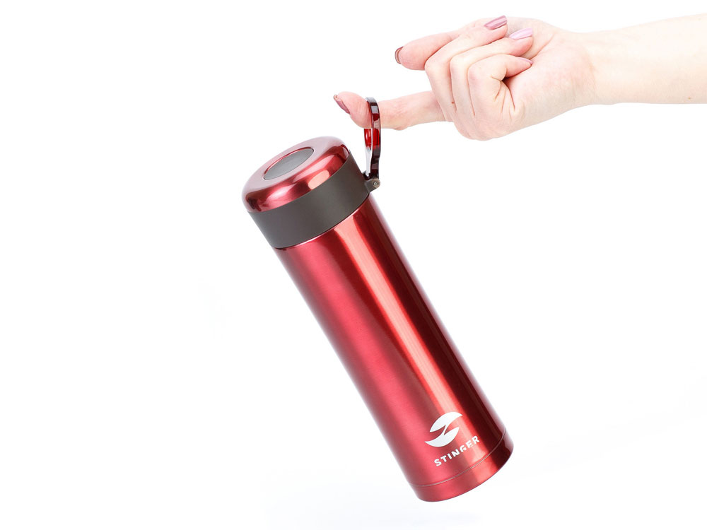Термокружка Stinger, 0,42 л, сталь/пластик, красный глянцевый, 7,5 х 6,9 х 22,2 см