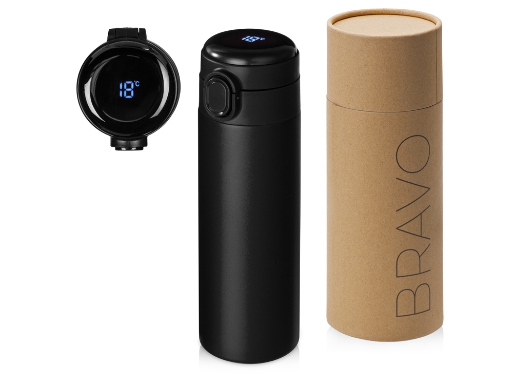 Вакуумная термокружка с медной изоляцией между стенками, которая точно не даст вам обжечься: сенсорный индикатор температуры сообщает о температуре напитка, выводя на дисплей информацию в градусах Цельсия. Что немаловажно, сенсор работает от сменной батарейки, что существенно продлит срок службы Bravo, позволяя не расставаться с полюбившейся термокружкой.