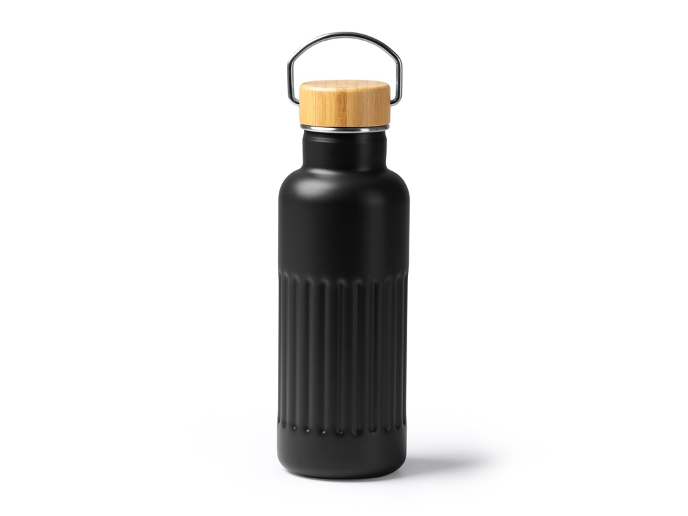 Термобутылка NOBUK из переработанной нержавеющей стали , с бамбуковой крышкой, черный