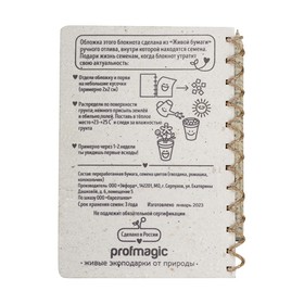 «Живой Блокнот» - это блокнот ручной работы с семенами цветов внутри обложки. Блок на 50 листов сделан из экологичной неотбеленной бумаги, вместо пружины используется льняной шпагат. Блокнот поставляется с бумажным карандашом в наборе. После использования блокнота, вырвите обложку, порвите ее на кусочки и посадите в землю. Поливайте, и уже через несколько недель вы увидите первые всходы.
