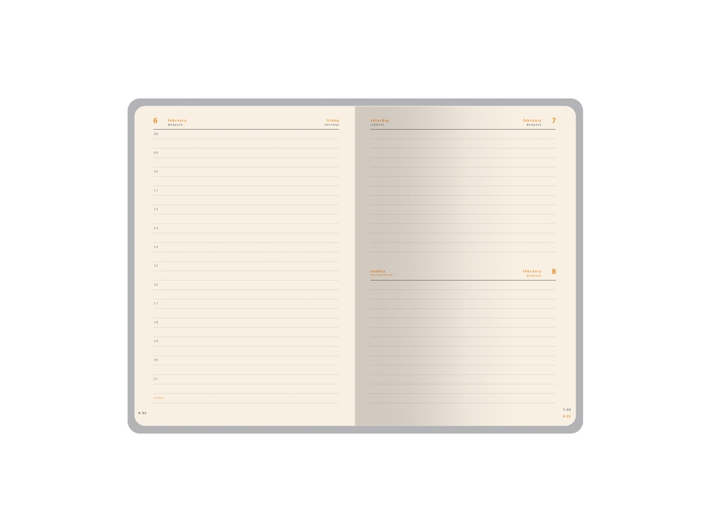 Фактурная обложка придает ему элегантный вид, а яркий цветной срез добавляет оригинальности. Двойное ляссе, выполненное в контрастных цветах, обеспечивает удобную навигацию. Для дополнительного удобства предусмотрен держатель для ручки. Внутренний блок выполнен из бежевой бумаги плотностью 70 г/кв.м и содержит страницу для персональных данных, 17 страниц справочной информации и датированные страницы с почасовой разметкой. Ежедневник «Boston» – отличный выбор для тех, кто ценит качество и продуманный дизайн.