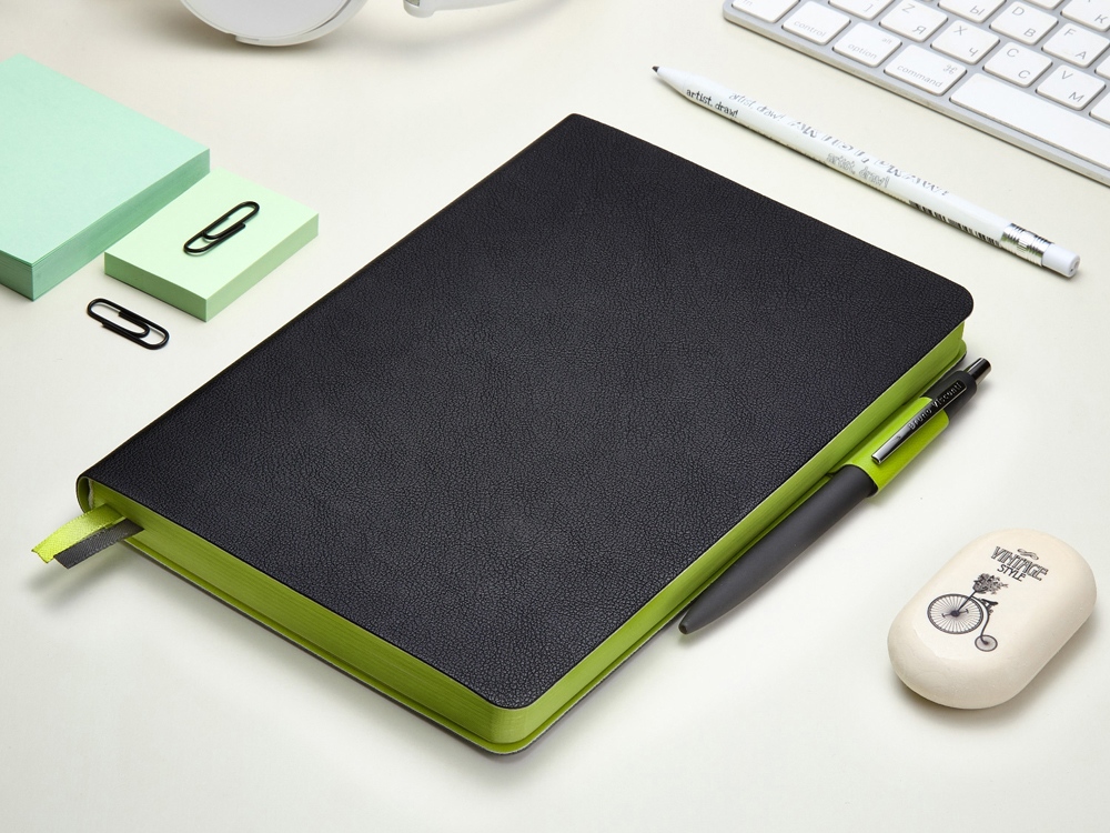 Ежедневник А5 датированный "Boston" 2026, черный с салатовым обрезом