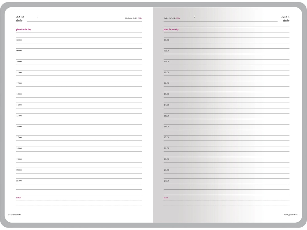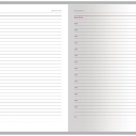 В ежедневнике «Sidney Nebraska» есть полезная справочная информация и телефонная книга на 18 листов, а также 272 страницы для записи идей, мыслей и составления рабочих планов. Для изготовления страниц используется качественный белый офсет повышенной плотности (70 г/кв м) с серебристым срезом, который производится в Японии и подходит для всех видов чернил. Разметка блока с указанием времени позволяет планировать дела с точностью до 1 часа.