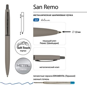 Ручка металлическая шариковая "San Remo", софт-тач, 1.0 мм, серый