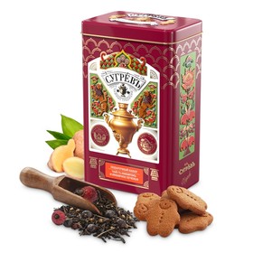 Состав: Байховый чай черный, имбирь, малина, клюква, шиповник, гвоздика, мята