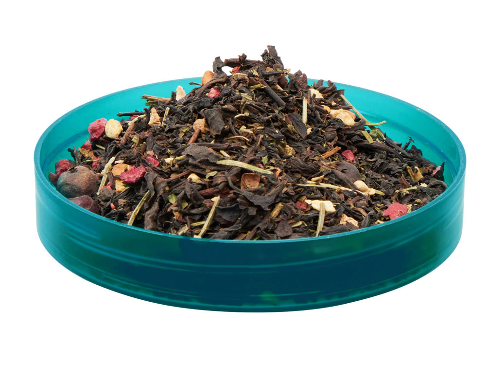 Новогодний чай отличается приятным пряным вкусом с оттенками хвои и можжевельника. Обладает согревающим эффектом за счет имбиря и малины. Отлично подойдет для уютных вечеров в кругу близких в преддверии нового года.