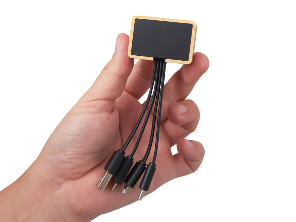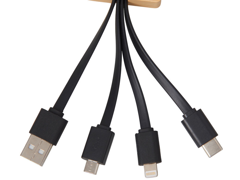 Универсальный зарядный кабель 3-в-1 — элегантное решение для владельцев любых гаджетов. С тремя разъемами (USB-C, micro USB, Lightning), он заменяет три кабеля в одном компактном корпусе, выполненном из натурального бамбука и переработанного ABS-пластика. Это не просто практичный аксессуар — это экосознательный стиль, который подчеркнёт ваш вкус и заботу об окружающей среде. Встроенная белая подсветка с возможностью нанесения логотипа добавляет изюминку: ваш бренд или инициалы мягко светятся при подключении, создавая эффект премиальности и индивидуальности. Идеален для повседневного использования, путешествий и в качестве запоминающегося корпоративного подарка.
