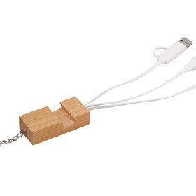 Корпус кабеля выполнен из натурального бамбука — экологически чистого и прочного материала. Деревянная подставка не только защищает кабель от перегибов, но и служит удобной опорой для телефона при видеозвонках, прослушивании музыки или просмотре видео.