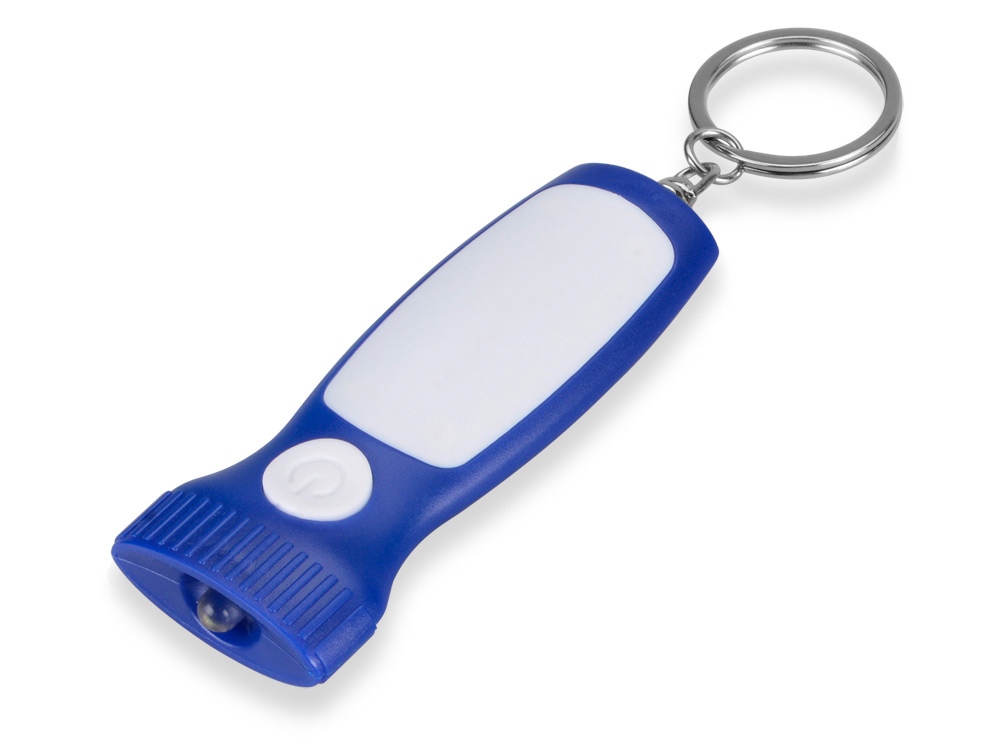Яркий брелок со встроенным фонариком. Плоская форма и большая ручка с белой вставкой делает брелок удобным для нанесения логотипа.