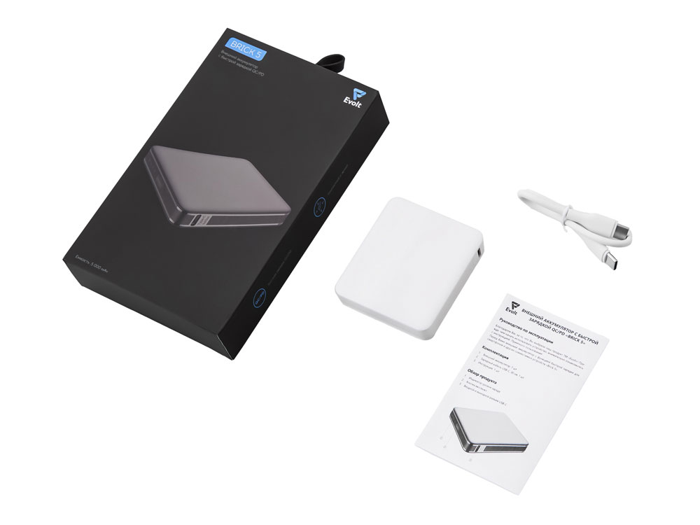 Внешний аккумулятор «Brick 5» с быстрой зарядкой PD, 5000 мАч, белый