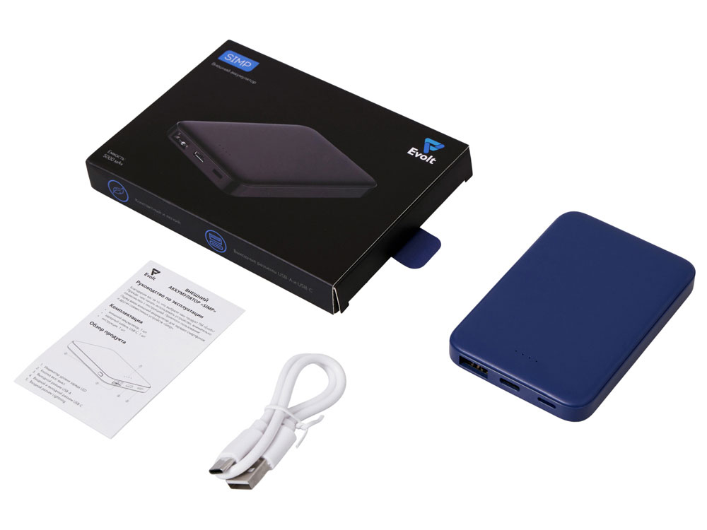 Внешний аккумулятор «Simp», 5000 мАч, темно-синий