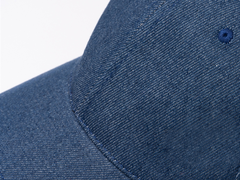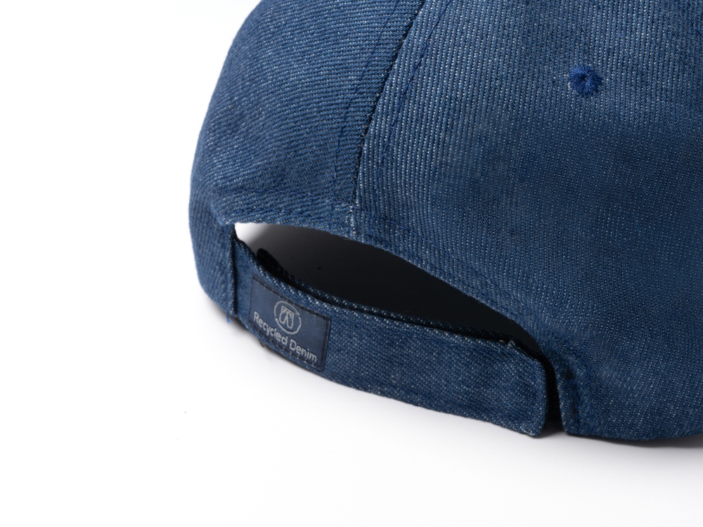 Бейсболка 6 панелей из переработанной джинсовой ткани. Вышитые вентиляционные отверстия.