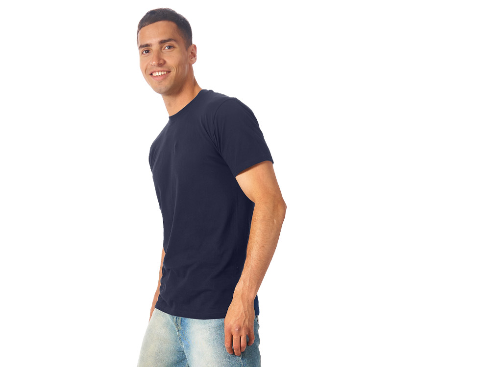 Мужская футболка сшита из натурального хлопка без боковых швов. Отлично подходит для нанесения рекламной информации. Возможна вышивка или трафаретная печать. Натуральный материал не вызывает раздражения кожи.