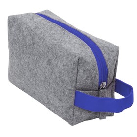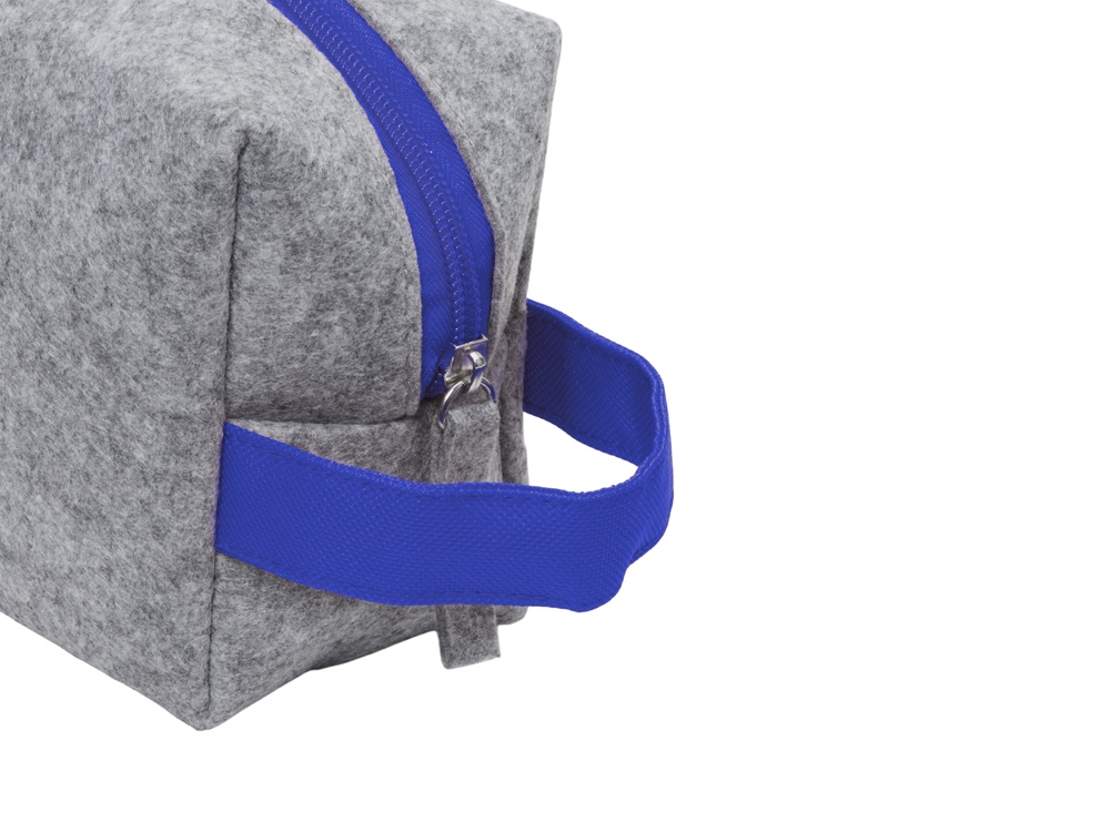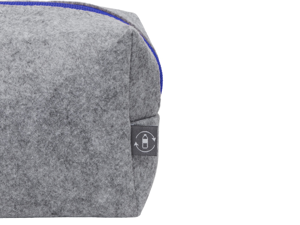 Косметичка из РПЕТ фетра с ручкой "Felt", серый с синим