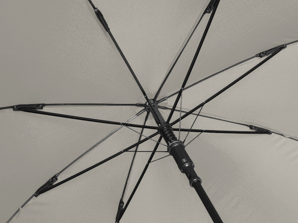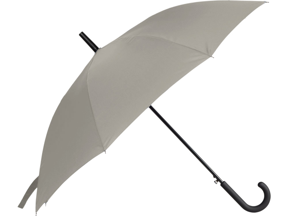 Купол зонта-трости выполнен из переработанного пластика. На ручке зонта расположена кнопка автоматического открытия. Гибкие спицы из стекловолокна делают зонт стойким к порывам ветра. Удобная ручка софт тач. Фиксирующая купол застежка на липучке шириной 3 см - дополнительная опция для нанесения вашего логотипа.